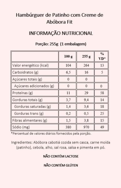 Delicioso hambúrguer de patinho grelhado, acompanhado de nosso creme de abóbora fit (abóbora cabotiá cozida e refogado de alho e cebola). Sem creme de leite e sem manteiga.